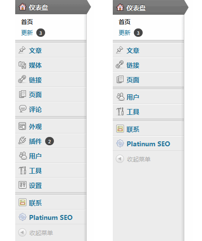 默认情况下,使用管理员账号登陆WordPress后台将看到侧边栏的所有菜单项,另外不同权限的WordPress用户登陆后也将看到不同的菜单。对于使用WordPress建立企业网站来说,企业网站只使用了WP的部分功能,因此侧边栏中的部分菜单是用不着的。然而如果你将网站后台交给客户以后,客户一下子看到这么多菜单会很疑惑,会对这么复杂的后台产生恐惧心理。这种情况下,何不根据网站实际功能,将用不着的侧边栏菜单删掉呢?
