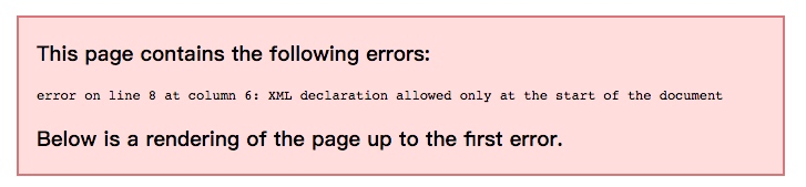 这个问题的解释是生成的XML文件不符合规定,我们查看网页的源代码,如下图,可以发现XML内容的上面有空行,因此导致了该错误的出现。