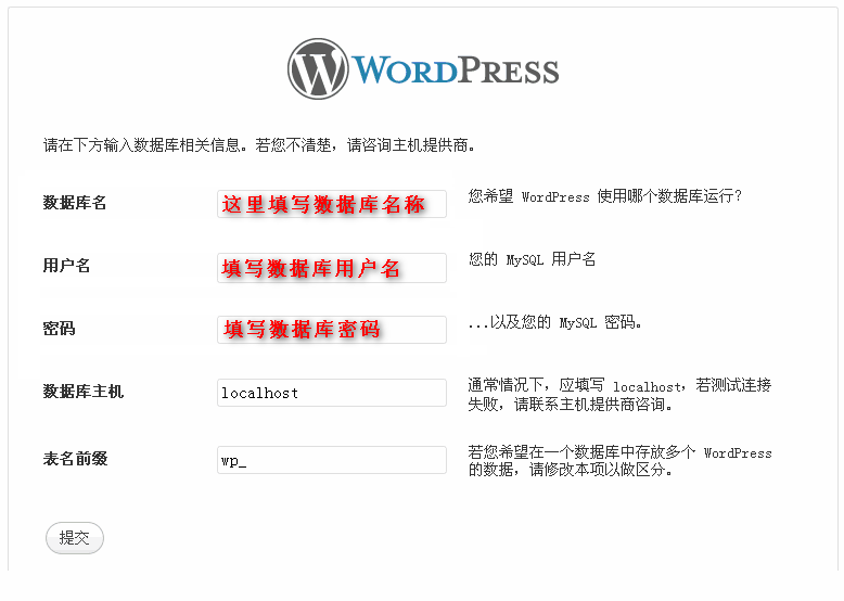 你只需要安装界面提示,输入第二步中创建的MySQL数据库信息,然后点击“提交”即可。