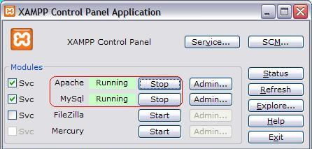 访问 XAMPP 官方网站进行下载并安装。安装完毕XAMPP后,你需要打开Apache 和 MySQL 两个服务,如下图: