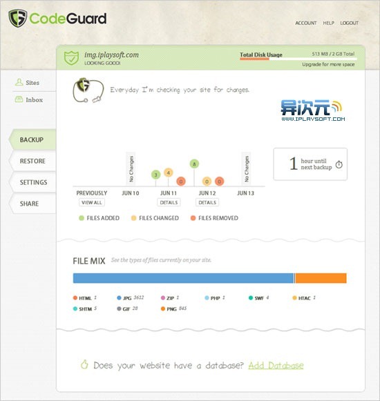 CodeGuard 是一个免费的全自动的网站备份服务,不仅适用于WordPress站点,还适用于任何网站,只要你有服务器的FTP信息,它就能让站长们方便地备份和恢复自己网站的文件数据和数据库。它的目标就是成为你网站的时光机,当然,如其名,也将会是你网站代码的最好的守卫!在各种杯具的发生之后,起码你还能轻松恢复回来。