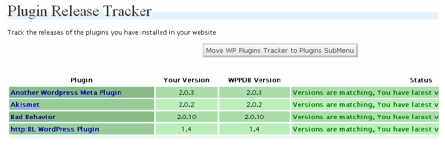 解决方案:如果你的博客程序或插件是直接从开发者的站点获得的,那么你可能已经使用了最新版本,你可以安装 WordPress Plugin Tracker 插件来跟踪插件,查看是否使用了最新版本。安装并激活插件之后,运行该插件查看你是否正在使用最新的插件,截图如下: