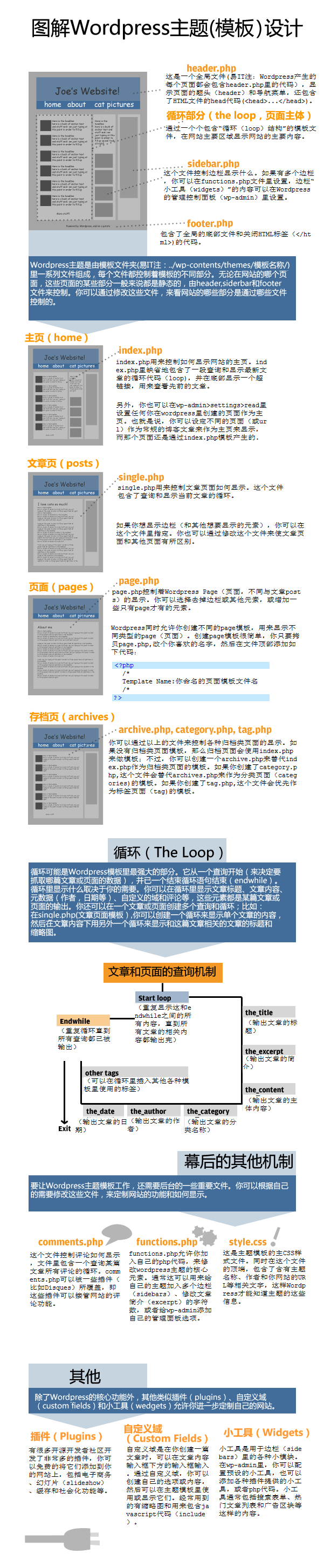 除以上三个文件外,还有一个最重要的功能是展现站点内容,这时候我们需要模板文件,统称为The Loop,该部分将在下面重点介绍。